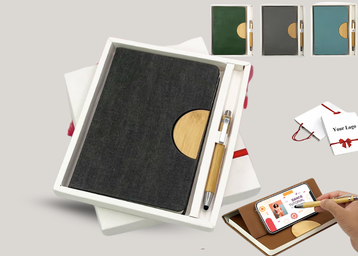 Customized Bamboo Employee Joining Kit with Notebook, Pen, and Card Holder
