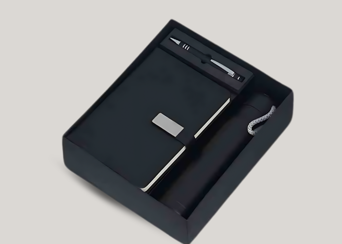 Customized Black Employee Joining Kit with Notebook and Tech Gadgets
