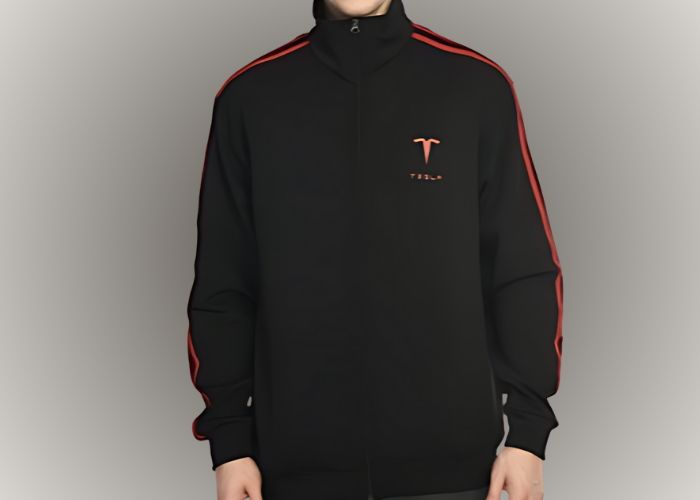 Customized Black Full-Zip Jacket with Red Accents and Logo