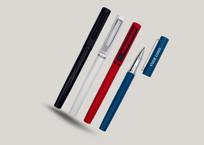 Customized Black, White & Blue Metal Pens with Logo