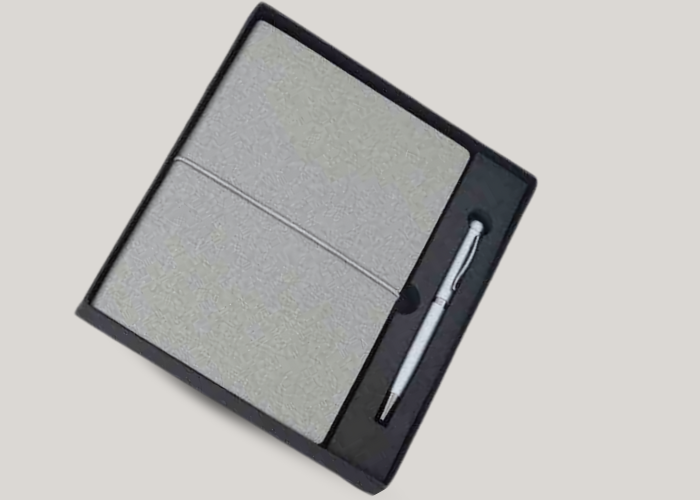 Customized White Leather Employee Joining Kit with Notebook, Pen, and Card Holder