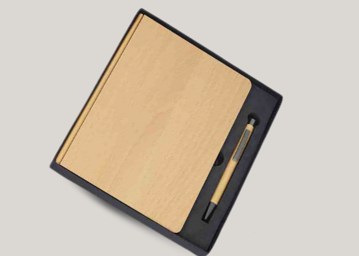 Customized Wood Grain Employee Joining Kit with Notebook, Pen, and Card Holder